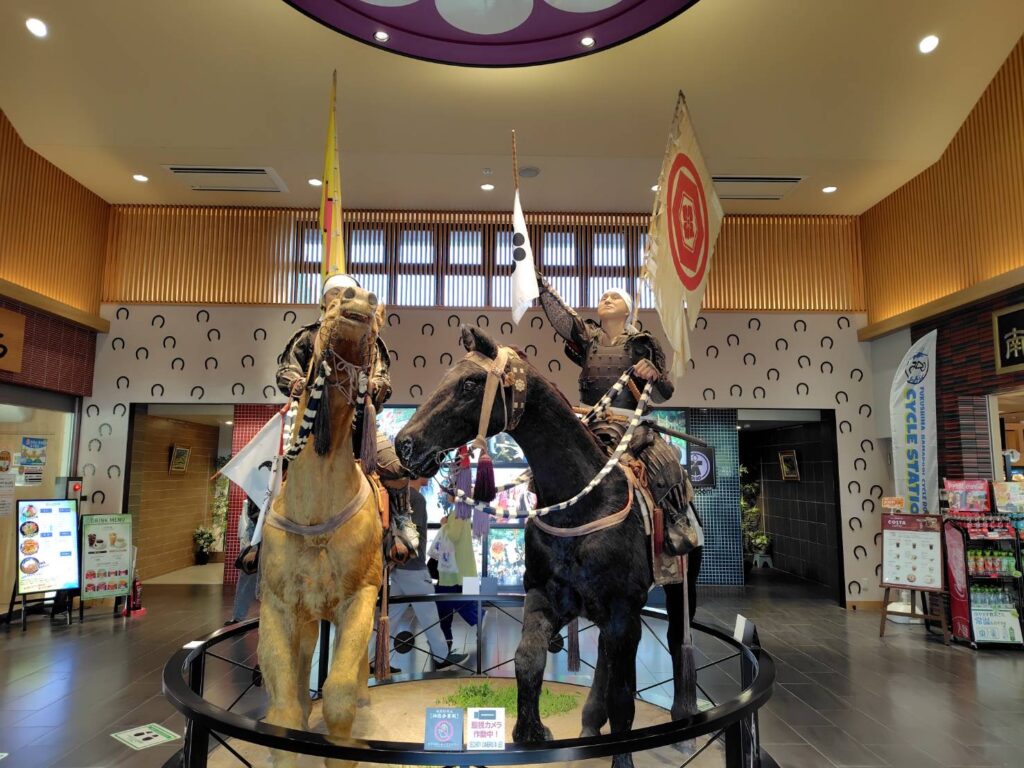 入り口に入ると、馬追の街、相馬らしく、乗馬した二人の等身大人形が迎えてくれます。