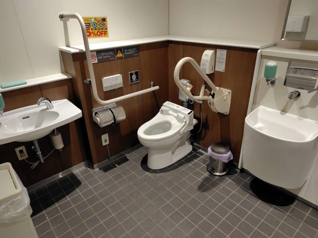 ベニバナウォークさんのバリアフリーで優れているのは、四か所あり「誰でもトイレ」全てにおむつ交換できるスペースが確保されていることです。